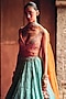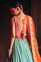 Featuring an aqua lehenga in tissue base with mirror embroidery. It is paired with an orange blouse and a dupatta. Style this designer set with wedges, gold jhumkas and a sleek bun for a traditional look. Ideal for weddings or sangeet ceremonies.