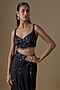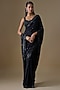 Featuring a black saree in crepe base. It is paired with a blouse and an underskirt. Accentuate it with statement jewellery and heels for a festive occasion, cocktail or sangeet ceremony.