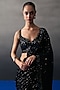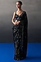 Featuring a black saree in sequins base with mirror embroidery. It is paired with a blouse and a petticoat. Accentuate it with jewellery, embellished heels and a potli bag for a wedding, sangeet or engagement ceremony.