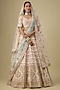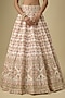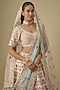 Featuring a blush pink lehenga in raw silk base. It is paired with a blouse and two dupattas. Accentuate it with statement jewellery and heels for a wedding or engagement ceremony.