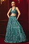 Featuring a cerulean blue lehenga in net base with embroidery. It is paired with a blouse and an embroidered dupatta having tassels detailing. Accentuate it with statement jewellery, a coordinated clutch and classic embellished heels for a stylish ensemble, ideal for weddings, sangeet nights or engagement ceremonies.
