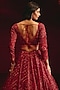 Featuring a deep red lehenga in net base with embroidery. It is paired with a blouse, a veil and an embroidered dupatta having tassels detailing. Accentuate it with a regal polki jewellery, an embellished potli and heels for a stunning bridal ensemble, ideal for wedding ceremonies, pheras or receptions.