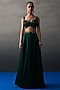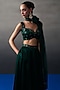 Featuring an emerald green lehenga in satin silk base. It is paired with a blouse having tonal mirror embroidery and a dupatta. Accentuate the designer lehenga with jewellery, embellished heels and a potli bag for a wedding, sangeet or engagement ceremony.
