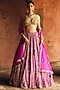 Featuring a fuchsia pink lehenga in raw silk base with mirror embroidery. It is paired with a lime yellow blouse and a dupatta. Accentuate it with kundan polki or meenakari jewellery, embellished heels and a potli bag for an elegant look, perfect for weddings, sangeet ceremony or a bridesmaid look.