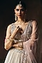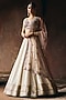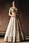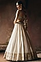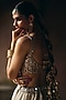 Featuring a gold lehenga in banarasi tissue base with mirror and gota detailing. It is paired with a blouse and a dupatta. Style this designer set with wedges, kundan polki jewellery and a sleek bun for a regal look. Ideal for weddings, sangeet ceremonies or a bridal look.