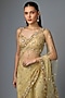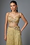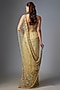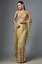Enhance your wardrobe with this gold saree crafted in net with embroidery. The set includes a saree and a blouse and an underskirt. To complete the look, pair it with wedges, statement earrings, and a potli bag for a sangeet or engagement ceremony .