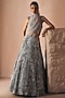 Ice Grey Satin Organza Crystal Embroidered Lehenga Set