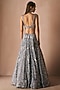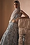 Featuring an ice grey lehenga in satin organza base with crystal, cutdana, and sequins embroidery. It is paired with an embroidered blouse having a sweetheart neckline and a sheer embellished dupatta. Accentuate it with dangler earrings and embellished heels for a sangeet, cocktail or wedding ceremony.