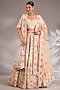Featuring an ivory lehenga in raw silk base with embroidery. It is paired with an embroidered blouse and a two net dupattas. Style it with minimal polki jewellery and block heels, perfect for a wedding or engagement ceremony.