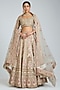 Featuring an ivory lehenga in raw silk base with embroidery. It is paired with an embroidered blouse and a pair of embroidered dupattas. Accentuate the designer lehenga with a sleek bun, kundan polki or pearl jewellery, embellished heels and a potli bag for a bridal look. Perfect wear for your wedding engagement ceremony.