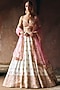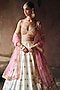 Featuring an ivory lehenga in raw silk base with zari floral and mirror embroidery. It is paired with a blouse and a blush pink dupatta. Style this designer set with wedges, gold jhumkas and a sleek bun for a traditional look. Ideal for weddings or a bridal look.
