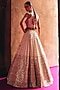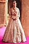 Featuring an ivory lehenga in raw silk base with golden zari, gota and mirror embroidery. It is paired with a blouse and a dupatta. Style this designer set with wedges, polki jewellery and a sleek bun for a regal look. Ideal for weddings or a bridal look.