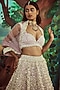 Featuring a gracious lilac lehenga in organza base, an ideal choice for the Indian bride. This chic lehenga set has the ageless craftsmanship of pearls, crystals, and sequins hand embroidery. It includes a matching blouse and a dupatta to complete the bridal look. Style the look with dangler earrings and heels for the perfect sangeet, wedding, or engagement ceremony.