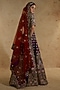 Featuring a gracious maroon lehenga in raw silk base, an ideal choice for the Indian bride. This chic lehenga set has the ageless craftsmanship of silk thread, dabka, sequins, cutdana and zardosi embroidery. It includes a matching blouse and two net dupattas to complete the bridal look. Style the look with dangler earrings and heels for the perfect sangeet, wedding, or engagement ceremony.