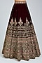 Featuring a maroon lehenga in velvet base with embroidery. It is paired with an embroidered blouse and a pair of embroidered dupattas. Accentuate the designer lehenga with a sleek bun, kundan polki or gold jewellery, embellished heels and a potli bag for a bridal look. Perfect wear for your wedding or engagement ceremony.