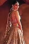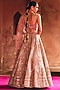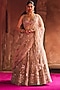 Featuring a peach lehenga in organza base. It is paired with a blouse and a dupatta. Accentuate it with statement jewellery and heels for a wedding or engagement ceremony.