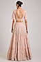 Featuring a peach lehenga in raw silk base with embroidery. It is paired with an embroidered blouse and a pair of embroidered dupattas. Accentuate the designer lehenga with kundan polki or pearl jewellery, a sleek bun, embellished heels and a potli bag for a bridal look. Perfect wear for your wedding or engagement ceremony.