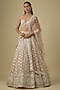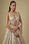 Featuring a peanut pink lehenga in organza base. It is paired with a blouse and a dupatta. Accentuate it with statement jewellery and heels for a wedding or engagement ceremony.