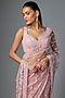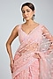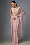 Enhance your wardrobe with this pink saree crafted in net with embroidery. The set includes a saree, a blouse and an underskirt. To complete the look, pair it with wedges, statement earrings, and a potli bag for a sangeet or engagement ceremony.