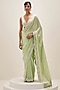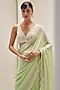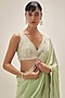 Featuring a pistachio green saree in crepe base with pearl hand embroidery. It is paired with a pearl-studded blouse and an underskirt. Accentuate it with dangler earrings and embellished heels for a sangeet, cocktail or wedding ceremony.