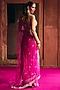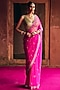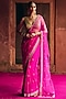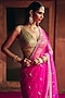 Featuring a rani pink saree in net base with mirror border detail. It is paired with a golden blouse and an underskirt. Style this designer set with wedges, gold jhumkas and a sleek bun for a traditional look. Ideal for weddings or sangeet ceremonies.