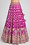 Featuring a rani pink lehenga in raw silk base with embroidery. It is paired with an embroidered blouse and two dupattas. Accentuate it with emerald kundan polki or meenakari jewellery, a floral hairdo and block heels, perfect for wedding or engagement ceremony.