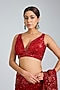 Featuring a red saree in net base with embroidery. It is paired with an embroidered blouse and an underskirt. Accentuate it with soft curls, emerald jewellery and embellished heels for a wedding or sangeet ceremony.