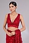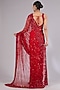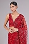 Featuring a red saree in net base. It is paired with a blouse and an underskirt. Accentuate with statement jewellery and heels for a wedding or sangeet ceremony.