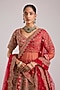 Featuring a red lehenga in raw silk base with embroidery. It is paired with an embroidered blouse and a pair of embroidered dupattas. Accentuate the designer lehenga with kundan polki or gold jewellery, a sleek bun, embellished heels and a potli bag for a bridal look. Perfect wear for your wedding or engagement ceremony.