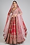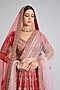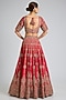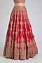 Featuring a red lehenga in raw silk base with embroidery. It is paired with an embroidered blouse and two embroidered dupattas. Style this designer lehenga set it with kundan polki jewellery, embellished heels and a potli bag for a regal look.