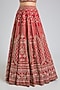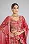 Featuring a red lehenga in raw silk base with embroidery. It is paired with an embroidered blouse and two embroidered dupattas. Style this designer lehenga set it with kundan polki jewellery, embellished heels and a potli bag for a regal look.