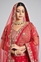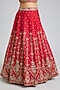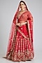 Featuring a red lehenga in raw silk base with embroidery. It is paired with an embroidered blouse and two embroidered dupattas. Style this designer lehenga set it with kundan polki jewellery, embellished heels and a potli bag for a regal look. Perfect for wedding ceremonies or bridal festivities.
