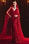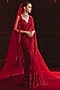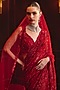 Featuring a red saree in soft net base with intricate embroidery. It is paired with a blouse, an underskirt, and an embroidered veil dupatta. Accentuate it with statement emerald or diamond jewellery, an embellished clutch and elegant heels for a stylish ensemble, ideal for wedding ceremonies, bridal entry moments or grand reception celebrations.