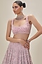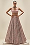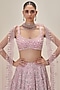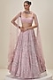 Featuring a rose pink lehenga in organza base with cutdana, crystal and sequins embroidery in geometric pattern. It is paired with an embroidered blouse and a pearl-accented dupatta. Accentuate it with dangler earrings and embellished heels for a sangeet, cocktail or wedding ceremony.