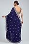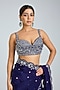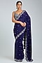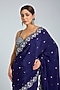 Featuring a royal blue saree in crepe base with embroidery. It is paired with an embroidered blouse and an underskirt. Accentuate it with soft curls, swarovski jewellery, embellished heels and a potli bag for a wedding or engagement ceremony.