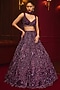 Featuring a royal purple lehenga in soft net base with embroidery. It is paired with a blouse and an embroidered dupatta having tassels detailing. Accentuate it with statement jewellery, a coordinated clutch and classic embellished heels for a stylish ensemble, ideal for weddings, sangeet nights or engagement ceremonies.