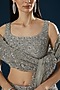 Featuring a gracious steel grey lehenga in organza base, an ideal choice for the Indian bride. This chic lehenga set has the ageless craftsmanship of sequins, bugle beads and crystals hand embroidery. It includes a matching blouse and a dupatta to complete the bridal look. Style the look with dangler earrings and heels for the perfect sangeet, wedding, or engagement ceremony.