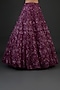 Featuring a gracious wine lehenga in organza base, an ideal choice for the Indian bride. This chic lehenga set has the ageless craftsmanship of cutdana, 3D sequins and crystal embroidery. It includes a matching blouse, a belt and a dupatta to complete the bridal look. Style the look with dangler earrings and heels for the perfect sangeet, wedding, or engagement ceremony.