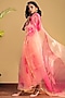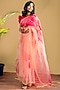 Featuring a pink saree in organza base with floral hand paint and a viscose jacquard blouse fabric. This contains only one piece.