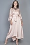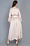 Featuring a pink kaftan dress in modal base with an uneven hemline and horseshoe scrunched detailings. It is paired with a matching belt.