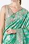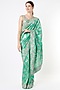 Featuring an aqua green saree in handloom woven silk base with zardosi embroidery. It is paired with a matching unstitched blouse.