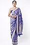 Featuring an electric blue handwoven saree in banarasi silk base with sequins, pearl, and gota patti hand embroidery. It is paired with a matching unstitched blouse and a viscose petticoat fabric.