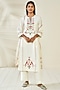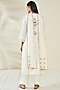 Featuring a natural colored kurta in cotton khadi base with embroidery and pockets. It is paired with matching pants and a dupatta.