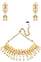This set features a 24k gold finish choker necklace studded with polki stones and pearl drops, set in set in metal alloy. It comes along with gold finish earrings with polki stone and pearls drop, set in set in metal alloy.