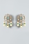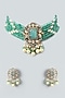 Featuring a two-tone finish multi-string choker necklace studded with kundan, green stones and pearls, set in mixed metal. It is paired with a matching pair of earrings.