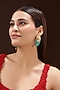 Featuring a pair of gold finish dangler earrings studded with kundan polki and carved green stone, set in mixed metal.