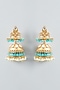 Featuring a pair of gold finish jhumka earrings studded with turquoise stones and kundan polki, set in mixed metal.