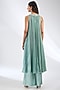 Featuring a green tunic dress in foil crepe base with sequins hand embroidery. It is paired with trousers. Accentuate it with statement jewellery and heels for a festive look.