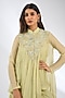 Featuring a green top in viscose chiffon base with sequins and bead hand embroidery. It is paired with a viscose crepe draped skirt and a slip. Accentuate it with statement jewellery and heels for festive occasions.
