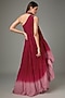 Red & Pink Silk Viscose Ombre Bead Embroidered One-Shoulder Tunic Set